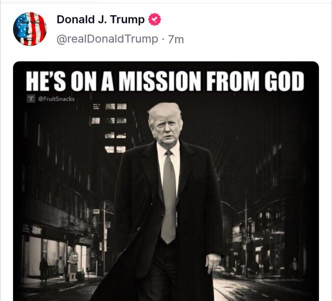 «Он выполняет миссию, посланную ему Богом. И ничто не сможет остановить грядущего», — гласит подпись.
