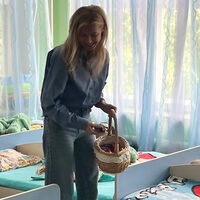 На снимках экс-политик запечатлена во время посещения детского учреждения. На снимке Поклонская с распущенными волосами, на ней надета голубая блузка и светло-синие джинсы свободного кроя.