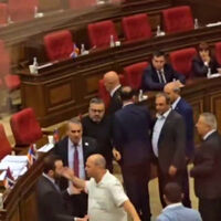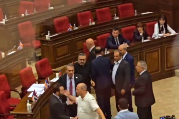 После его слов, в зале заседаний началась перепалка, в правящей партии начали скандировать «Позор» Агазаряну, после чего вице-спикер парламента безуспешно попытался призвать парламентариев к порядку, а один из депутатов швырнул бутылку в сторону представителей правящей партии.