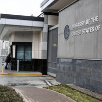 Несколько сотен жителей Киева вышли на митинг у американского посольства, требуя проведения «справедливых переговоров» между Москвой и Вашингтоном. Об этом сообщил украинский телеканал «Киев24».