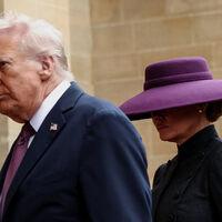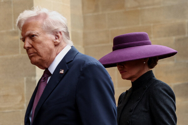 17 сентября Дональд Трамп и его жена Мелания прилетели в Великобританию. Супругов встретили у вертолета принц Уильям и Кейт Миддлтон. После этого их проводили на прием к королю Карлу III и королеве Камилле. Первая леди США появилась на публике в темно-сером костюме Christian Dior Haute Couture с юбкой, туфлях на каблуках и широкополой шерстяной шляпе фиолетового цвета.