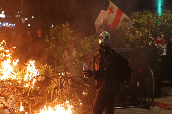 Ранее протестующие ворвались во двор резиденции президента в Тбилиси.