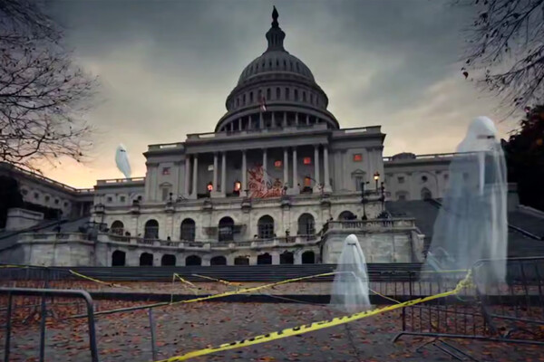 В анимационном ролике показывается, как рядом с погрузившимся в сумрак зданием Капитолия летают призраки и растворяются в воздухе. При этом вокруг здания стоят ограждения с натянутыми между ними желтыми полицейскими лентами.