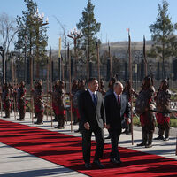26 ноября Путин в сопровождении кавалерийского эскорта прибыл в комплекс «Ынтымак-Ордо», где пройдут его переговоры с Жапаровым. Российский лидер на своем автомобиле «Аурус» подъехал к восточному входу резиденции.