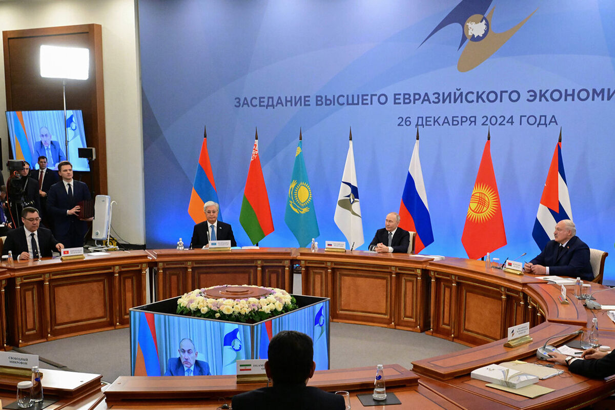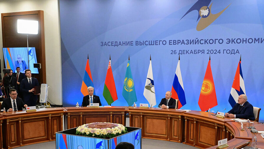 21 декабря в здании президентской библиотеки им. Ельцина в Санкт-Петербурге прошла встреча лидеров ЕАЭС. Политики обсудили в том числе вопросы развития единого рынка союза. В следующем году председательство в ЕАЭС перейдет к Казахстану.