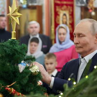 «Владимир Путин присутствует на рождественском богослужении в одном из храмов Подмосковья. С ним вместе военнослужащие и их семьи», — сказал представитель Кремля.