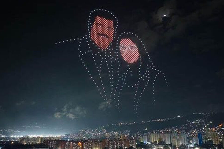 В небе над Каракасом появилось созданное беспилотниками изображение захваченных Соединенными Штатами президента Венесуэлы Николаса Мадуро и его жены Силии Флорес. Кадры из соцсетей опубликовал новостной портал Cubadebate.
