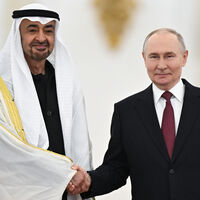 29 января шейх, который принял неделю назад в Абу-Даби переговорщиков из России, Украины и США, прибыл в Москву с официальным визитом. Перед началом переговоров с Путиным в Георгиевском зале Большого Кремлевского дворца прошла торжественная церемония представления членов российской и эмиратской делегаций.