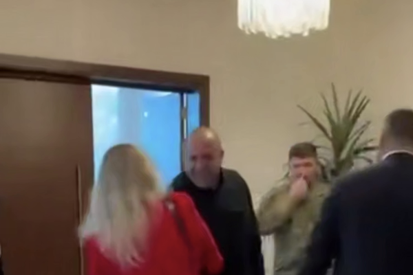 На опубликованных в сети кадрах можно увидеть главу украинской делегации, секретаря Совета национальной безопасности и обороны Украины Рустема Умерова. Рядом с ним стоят люди в военной форме.