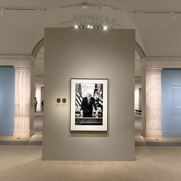 До этого в Национальной портретной галерее в Вашингтоне выставили один портрет Трампа. Тогда глава Белого дома опубликовал две фотографии портрета с разных ракурсов в социальной сети Truth Social. Эта работа была выполнена в черно-белой гамме. На портрете президент США стоит в Овальном кабинете, опершись обеими руками на стол.