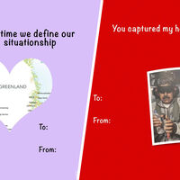 «Пришло время нам определиться с нашими отношениями», — гласит подпись под открыткой, где изображена Гренландия, заключенная в сердечко.