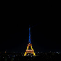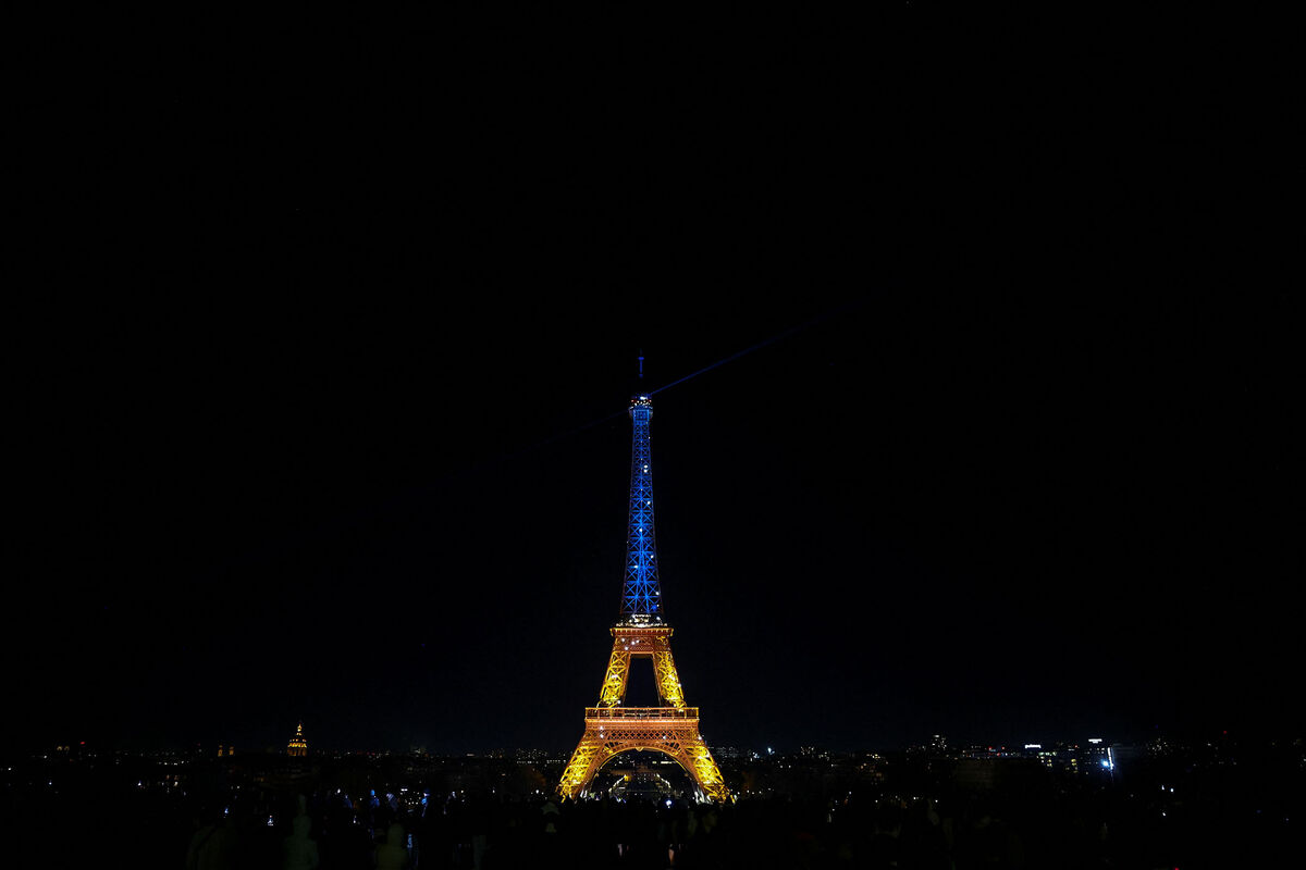 Эйфелева башня засветилась цветами украинского флага в связи с годовщиной начала специальной военной операции (СВО) на территории Украины. Об этом сообщает Le Figaro.