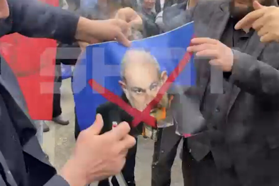 В центре Москвы у армянского посольства сожгли портрет премьер-министра Армении Никола Пашиняна. Акция протеста состоялась в день его прибытия в Россию с рабочим визитом, сообщает Life.ru со ссылкой на Telegram-канал SHOT.