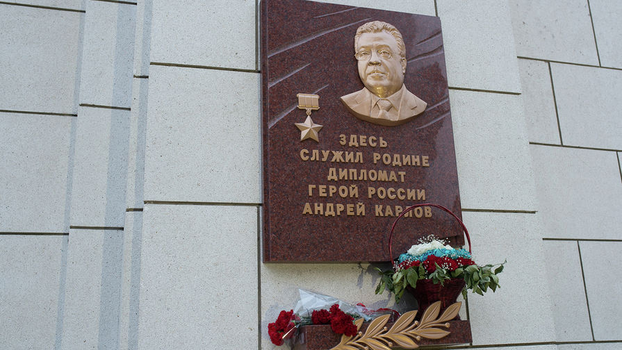 На Петрозаводской улице в Москве состоялось открытие мемориальной доски в память об убитом ровно год назад после России в Турции Андрее Карлове, передает «Интерфакс». На мероприятии присутствовали вдова и сын погибшего, а также министр иностранных дел России Сергей Лавров, заммэра Москвы Леонид Печатников и посол Турции в России Хюссейн Дириоз.