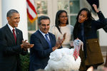 Президент США Барак Обама в среду помиловал двух индюков накануне Дня благодарения, который традиционно отмечается в четвертый четверг ноября. Индюков, которым в этом году удастся избежать участи стать блюдом на праздничном столе, зовут Хонест (от англ. honest — «честность») и Эйб (в честь 16-го президента США Авраама Линкольна). «Обе индюшки получат освобождение от духовки и проведут остаток своих дней на ферме в Вирджинии», — сообщили в Белом доме. Обе птицы в этом году родом из Калифорнии, им около 18 месяцев, а вес каждой из них составляет около 20 кг.