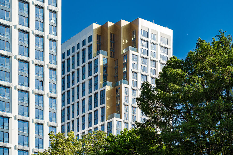 Идея близости к природе отражается на оформлении всего ЖК. Фасады каждой из четырех башен VERY на Ботанической выполнены в нейтральных светлых тонах. Углы в верхней и нижней части зданий «подрезаны», что делает их похожими на стволы берез. Лаконичные фасады облицованы керамогранитом и композитными панелями, в верхней части террас – латунными декоративными элементами, а оконные конструкции сделаны на основе алюминиевого профиля.
