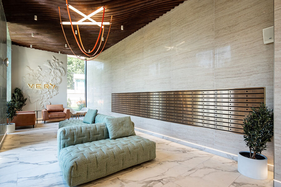 Жителей и гостей VERY на Ботанической встречают оригинальные цветочные барельефы и необычные люстры, большие панорамные окна и мягкие диваны. В просторных лобби комнаты для хранения колясок и велосипедов, гостевые санузлы и помещения-лапомойки для домашних питомцев, а в первом корпусе открыта детская игровая.
