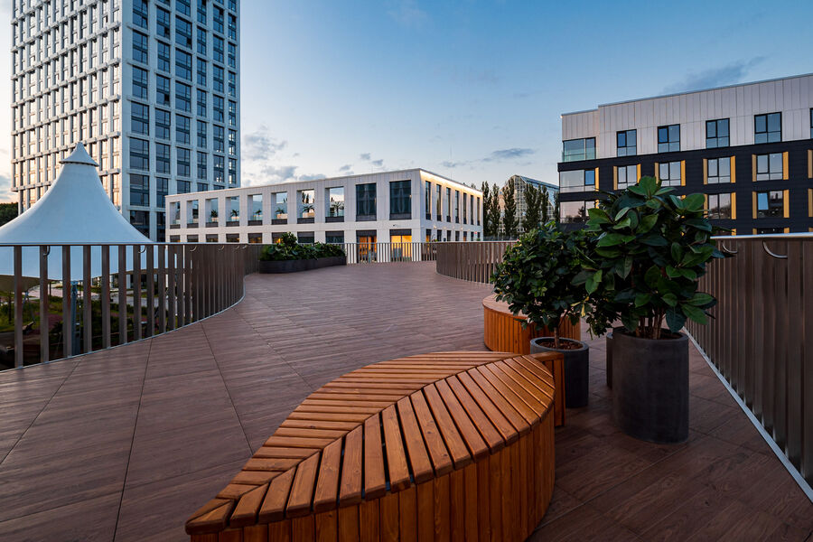 Главной «фишкой» этого проекта является бережное отношение к зеленому окружению и потребностям жителей. Комплекс стал органичным развитием этого места, здесь удобно и семейным парам с детьми, и тем, кто хочет пожить для себя. Благодаря продуманному зонированию все они могут наслаждаться жизнью в зеленом оазисе столичного мегаполиса.