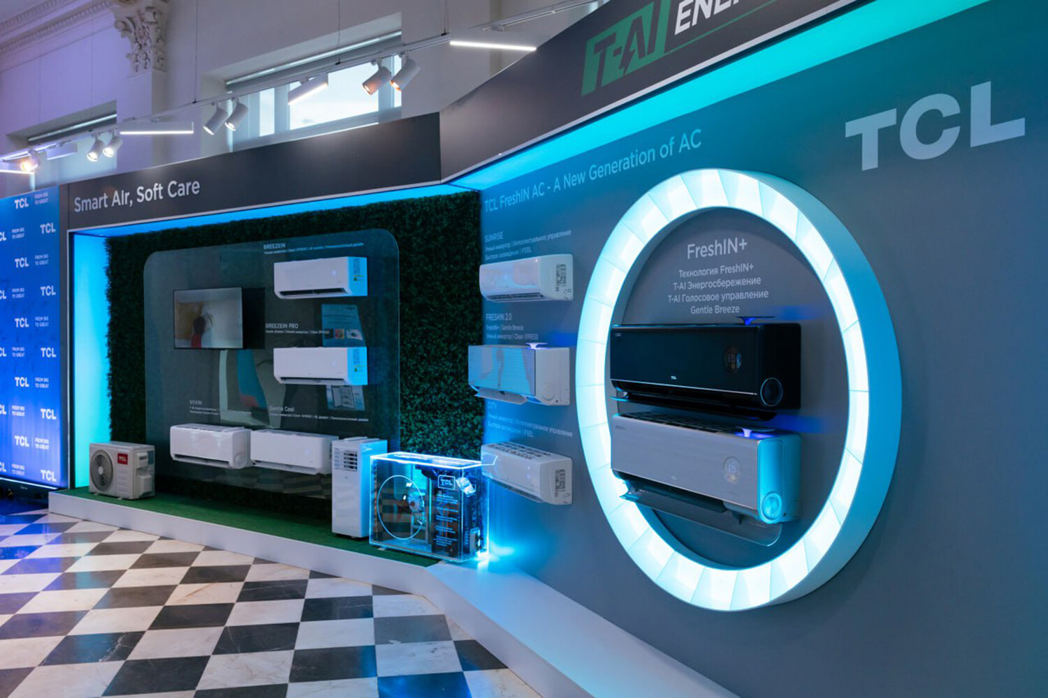 В рамках мероприятия были продемонстрированы новые серии кондиционеров FreshIN+ и VoxIN. Модели FreshIN+ оснащены функцией притока свежего воздуха, который проходит многоступенчатую фильтрацию. Также в ней реализована четырехкомпанентнаю система шумоподавления (до 16 дБ для свежего воздуха) и функция самоочистки наружного и внутреннего блоков. Технология Gentle Breeze равномерно рассеивает воздушный поток, делая его максимально мягким и комфортным.