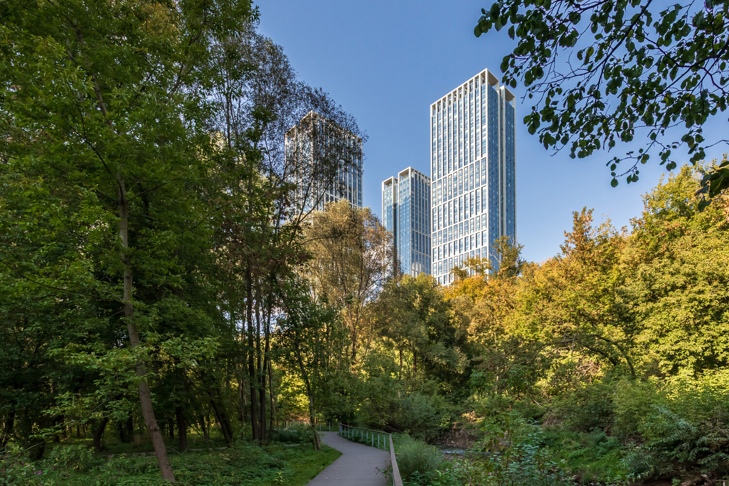 С одной стороны, Мосфильмовская находится рядом с центром Москвы, ключевыми деловыми кластерами, правительственными и культурными объектами, а также крупными городскими магистралями, обеспечивающими быстрые связи с разными частями города. С другой — локация исторически связана с обширными зелеными зонами, природными ландшафтами и долиной реки Раменки.