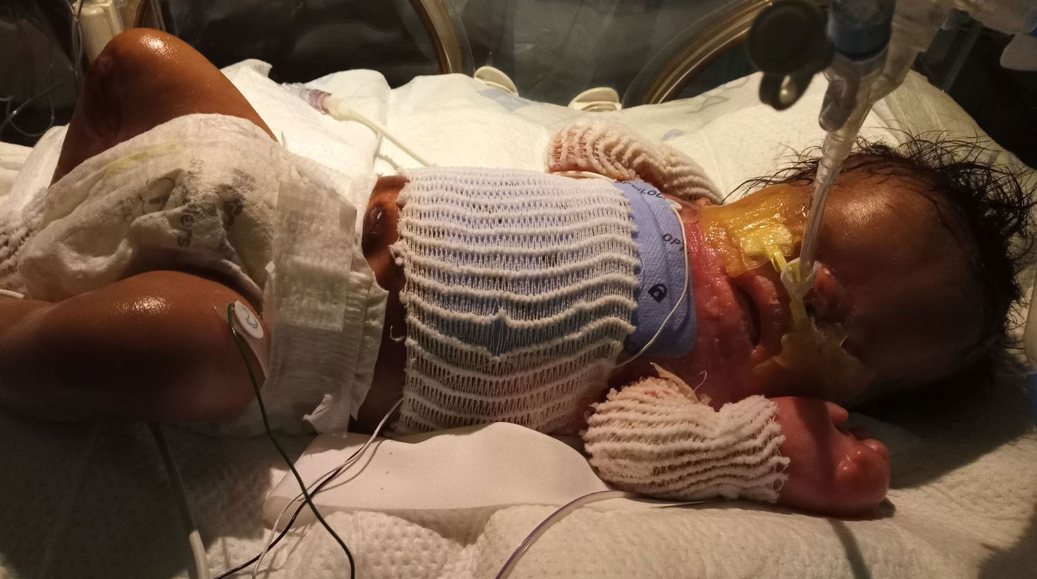 Пока что врачи вводят малышу обезболивающие препараты и часто меняют повязки. Его состояние улучшилось, за прошедшие месяцы он почти в три раза прибавил в весе.