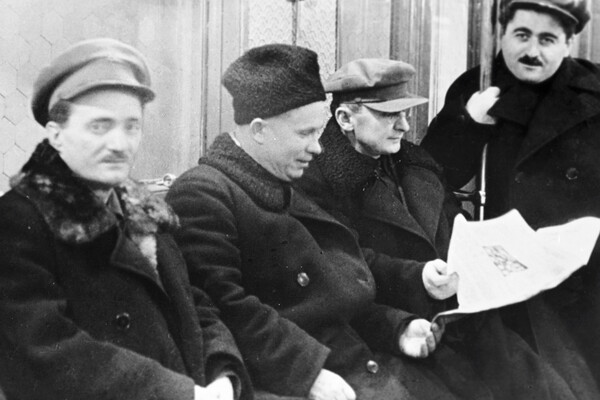 Никита Сергеевич Хрущев (второй слева) и Лаврентий Павлович Берия (второй справа), 1935 год