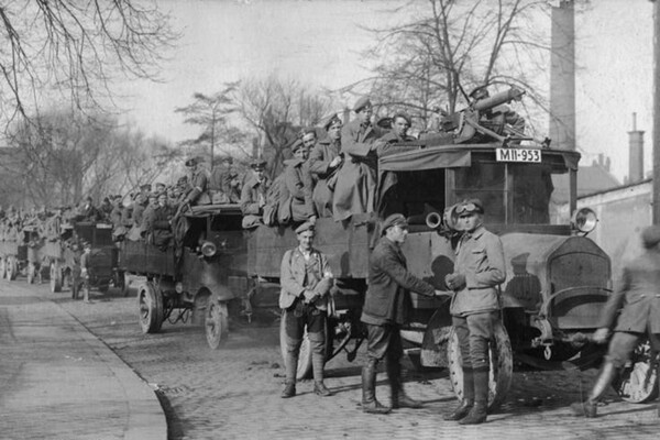 В октябре 1918 года, когда поражение Германии в Первой мировой войне стало очевидным, солдаты и матросы начали выходить из повиновения офицерам и поднимать бунты, постепенно переходящие в восстания. Чтобы не допустить хаоса и полного разгрома войсками Антанты, в ноябре рейхсканцлер принц Максимилиан Баденский заставил кайзера Вильгельма II отречься от престола, и власть перешла к Совету народных уполномоченных. Главную роль в нем играли социал-демократы в лице сравнительно умеренной СДПГ и отколовшейся от нее более левой НСДПГ.