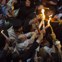 Паломники в храме Гроба Господня, где Иисус был распят, похоронен и воскрес из мертвых, держат свечи, толпясь на церемонии схождения, стараясь своими глазами увидеть чудо. Церемония каждый год транслируется по телевидению во многих странах мира. И в этом году церемония пройдет 4 мая, ее можно будет увидеть с 13:00 до 16:00 по Москве.