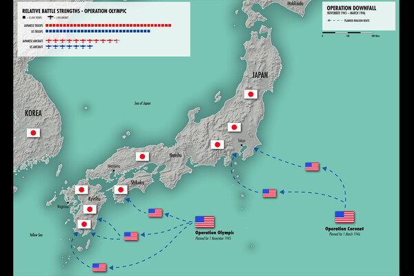 План Downfall предполагал две крупные высадки десанта как раз в этих местах, а в качестве плацдарма должна была использоваться Окинава.