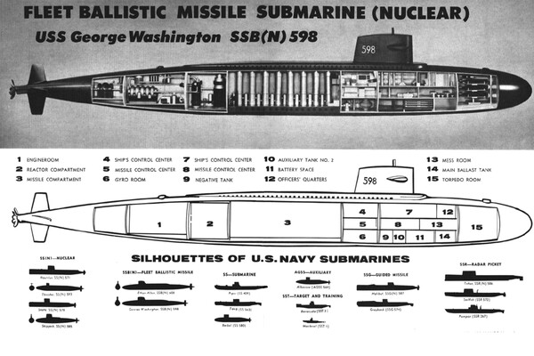 Так появилась подводная лодка «Джордж Вашингтон». Ее отличия от обычного «Скипджека» были столь малы, что возник миф, будто ее построили путем буквального распиливания почти готовой субмарины и добавлением ракет, но это неправда. Отсек выглядел, как длинный и очень низкий горб с плоской крышей, на которой располагались закрытые люками шахты.