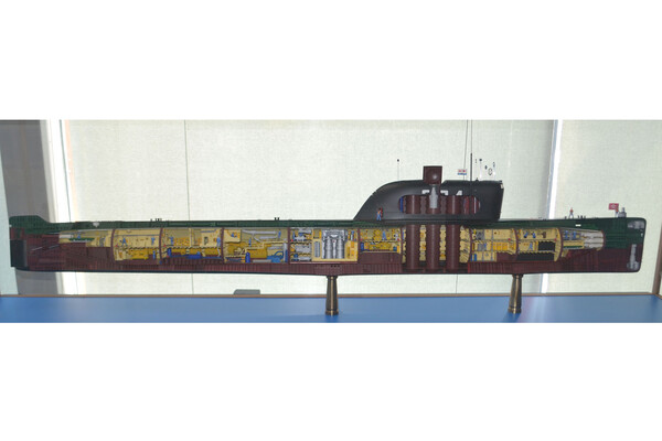 Однако когда на флоте осознали, сколь маленькой будет «Поларис», то полностью перекроили проект. Двухступенчатая ракета имела длину 8,7 метра, что позволяло вписать ее в корпус подводной лодки. Поэтому американские конструкторы взяли новейшую атомную субмарину типа «Скипджек» и вставили в нее 40-метровый ракетный отсек, между ядерным реактором и отсеком управления.