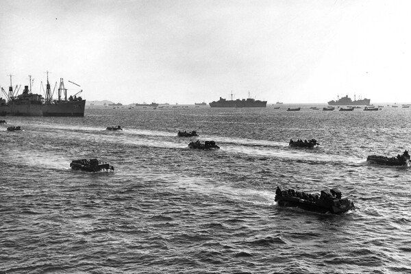 В конце лета 1950 года американские войска высадились на Корейском полуострове и остановили северокорейские армии, практически полностью занявшие юг страны в ходе внезапного нападения. Официально силы США были оформлены как войска ООН, куда помимо американцев входили британцы, турки, французы и другие, но их контингент был относительно малочисленным. 15 сентября морская пехота США совершила неожиданный десант глубоко в тылу северокорейцев и захватила Сеул. Сразу после этого на соединение с ними из Пусана — последнего анклава далеко на юге под контролем Южной Кореи — начала наступать американская армия при поддержке южнокорейских войск, которые спешно пытались привести себя в порядок после разгрома первого этапа войны.