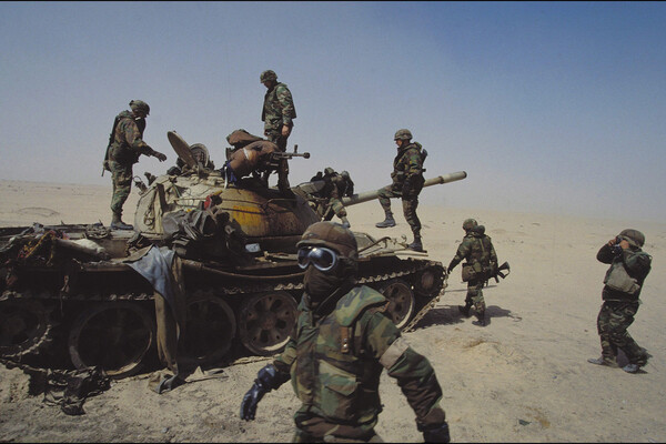 Иракская армия хоть и уступала западным (а также советской) с точки зрения подготовки, но получила богатый боевой опыт в войне с Ираном. Она была четвертой в мире по численности, и в районе Кувейта ей удалось сосредоточить примерно 550 тыс. солдат — это больше, чем Группа советских войск в Германии, которая должна была противостоять НАТО. Вооружена она была прекрасно — намного лучше, например, Украины на момент начала 2022 года. У иракцев были сотни современных танков Т-72 и тысячи более старых моделей. Артиллерией иракцы были оснащены по советскому стандарту, — она отвечала за большую часть огневой мощи.