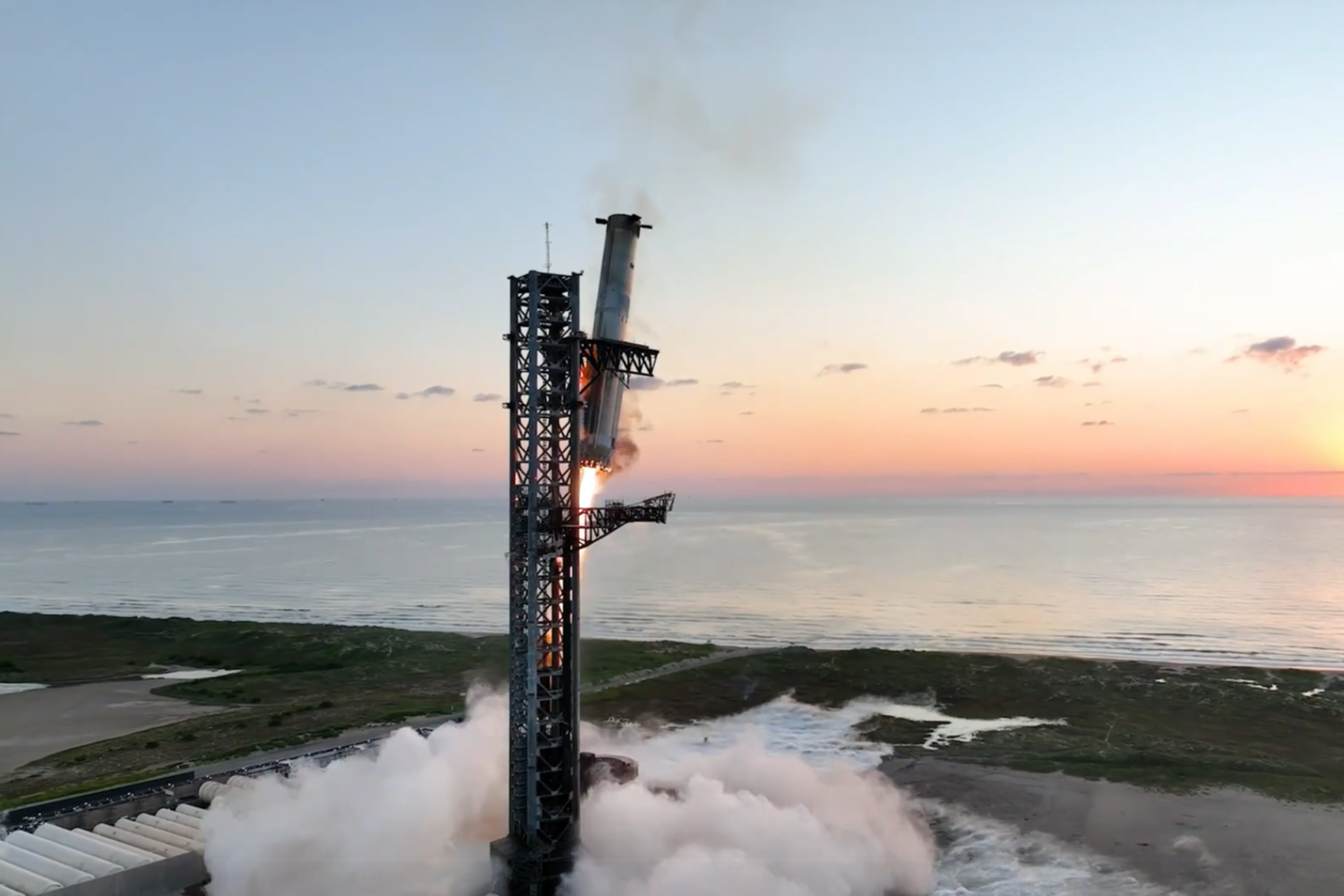 Посадка первой ступени Starship на стартовую башню в 2024 году