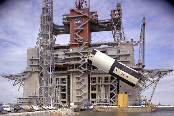 Первую ступень Saturn V везут на стенд для огневых испытаний