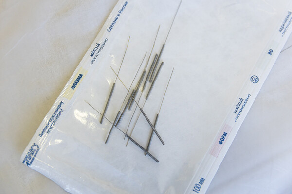 Я в растерянности. Нет никакой боли, игла не чувствуется. Так нужно сидеть 30 минут. — Я предпочитаю большие иглы, потому что мне не нравится втыкать по 50-60 штук, — объясняет Сергей Паршин. Поэтому мне лучше протащить большую иглу через все биоактивные точки. Лучше же одну, чем 10 штук втыкать. — А почему вы обосновались в клинике «РЖД»? — Тут понимающее начальство, которое расширяет площади для приема больных, а еще — самая лучшая стерилизующая иглы машина Sterrad 100s. Они стерилизуют их плазмой и автоматически упаковывают в пакетики. У меня за все время работы здесь не было ни одного воспаления на месте укола. — Вы колете в акупунктурной точке или вы колете там, где болит? — Я колю в акупунктурные точки, которые находятся в болевой зоне, и отдаленные точки. Это называется тактикой малого укола.