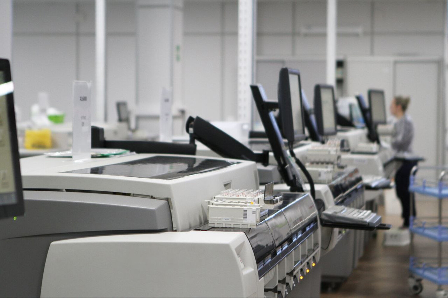 В лабораториях обычно используется много приборов, чтобы одновременно проводить сотни анализов.