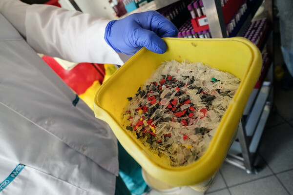 Фрагменты пробирок, предназначенные для дальнейшей утилизации