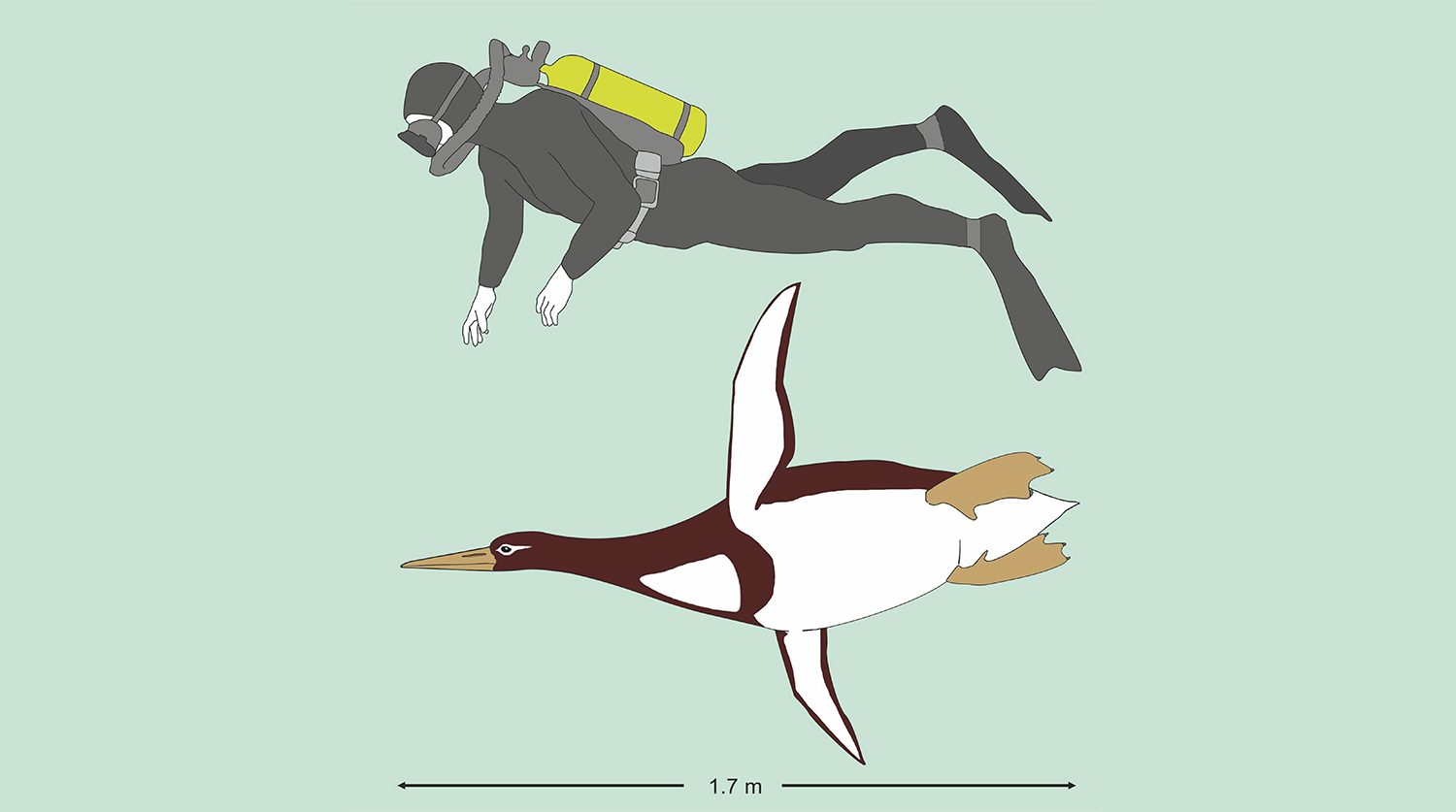 Измерения обнаруженных частей скелета показывают, что птица весила около 100 кг и имела рост около 1,7 м — примерно как у человека. Самый высокий вид ныне живущих пингвинов — императорские — достигают в высоту около 1,2 м. По предположениям исследователей, гигантские пингвины вымерли около 20 млн лет назад, когда в море появились млекопитающие — киты, тюлени и другие.