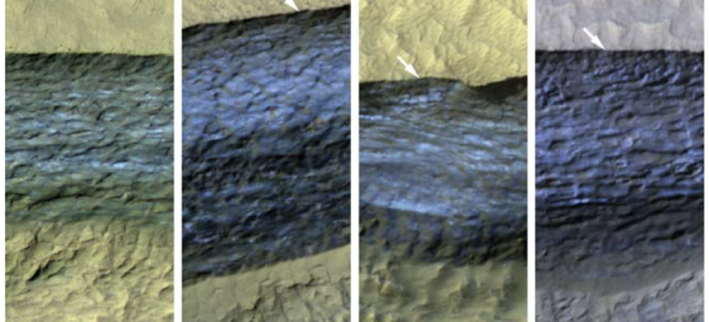 Исследователи изучили снимки, сделанные камерой HiRISE, установленной на борту межпланетной станции NASA Mars Reconnaissance Orbiter. На снимках они обнаружили восемь участков, где из-за эрозии стали видны ледники. Толщина некоторых из них превышает 100 м.