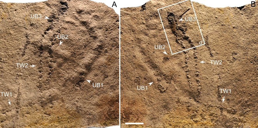 Ученые из Нанкинского института геологии и палеонтологии и Политехнического института Виргинии обнаружили на юге Китая два ряда отпечатков ног маленького животного, относящиеся к эдиакарию — геологическому периоду, имевшему место 541-635 млн лет назад. Следы принадлежат двусторонне-симvетричному (как и подавляющее большинство современных высокоорганизованных животных) животному с парными конечностями, которые позволяли ему приподнимать тело над землей.