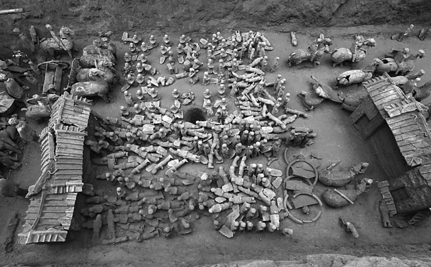 Археологи уже окрестили необычную коллекцию миниатюрной версией Терракотовой армии – более 8000 полноразмерных глиняных статуй воинов и лошадей, которые окружали гробницу древнекитайского императора Цинь Шихуанди. Основываясь на дизайне обнаруженных артефактов, исследователи приблизительно оценивают возраст ямы, в которой сделана находка, в 2100 лет.