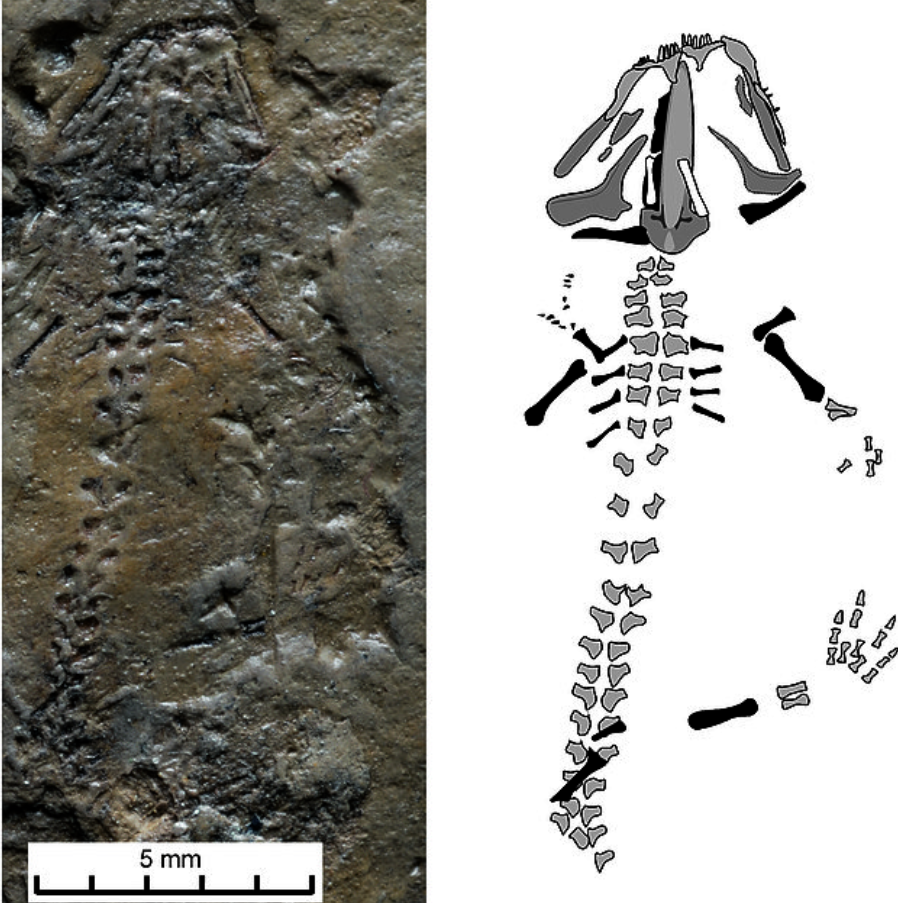 От животного длиной всего около 2,5 см сохранились окаменелости плечевых костей, рта и частей конечностей. Исследователи назвали его Triassurus sixtelae. Эти саламандры существовали на территории Киргизии около 230 млн лет назад — на 90 млн лет раньше, чем самая древняя известная саламандра. Исследователи считают, что новый вид может быть недостающим звеном между темноспондильными (вымершими земноводными) и современными саламандрами и лягушками.