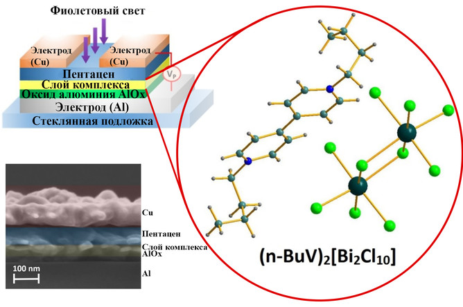 Исследователи «собрали» органические полевые транзисторы с дополнительным светочувствительным слоем из комплекса висмута с виологеновыми катионами. Для этого на промежуточном этапе «сборки» они осадили кристаллические пленки комплекса из раствора на диэлектрическом слое оксида алюминия. Ученые выяснили, что устройство можно «программировать», то есть обратимо переключать между двумя или даже несколькими квазистабильными электрическими состояниями. Для этого нужно подать импульс света при одновременном наложении электрического потенциала между электродами устройства. Реализация нескольких состояний в одном транзисторе открывает большие возможности для создания мультибитных элементов памяти для записи информации с высокой плотностью.