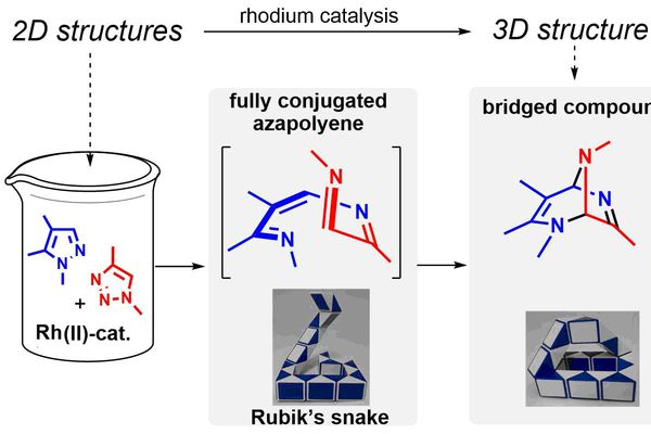 Ученые нашли простой способ химическим путем получать такие азотсодержащие полиены из простых и доступных гетероароматических соединений: пиразолов и триазолов — они активно используются при производстве лекарств и красителей. Синтезированные таким образом «змейки Рубика» самопроизвольно «укладываются» в высоко ненасыщенные (имеющие несколько двойных связей) мостиковые бициклические, то есть с двумя циклами, структуры. Эти соединения по строению напоминают алкалоиды, поэтому потенциально могут обладать биологической активностью и использоваться в медицинской химии. Кроме того, оказалось, что на их основе можно синтезировать еще более сложные циклические молекулы, которые имеют в своем составе атомы бора и цинка.