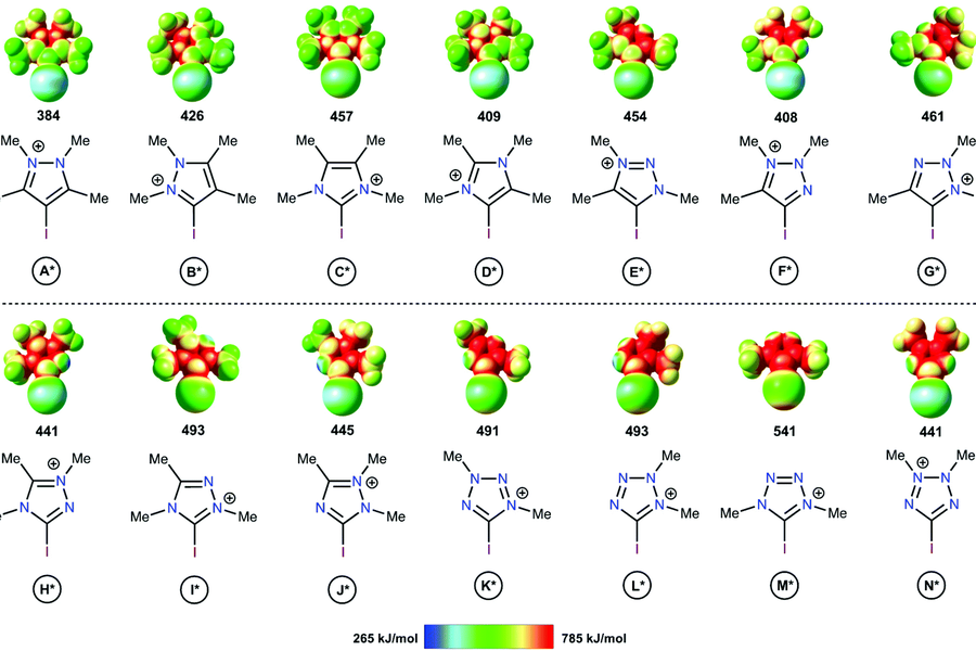 Ученые предположили, что несмотря на то, что все такие соединения несут на себе одинаковый суммарный положительный заряд, их каталитические свойства зависят от его распределения на молекуле. Чтобы проверить эту гипотезу, химики по взаимному расположению различных атомов теоретически рассчитали величину положительного заряда, который находится на атоме иода в каждом из азолиевых катионов. Расчеты показали, что чем больше заряд на атоме иода, тем меньше энергии нужно для осуществления реакции, а значит, тем лучше она пойдет и, таким образом, тем выше каталитическая активность соединения.