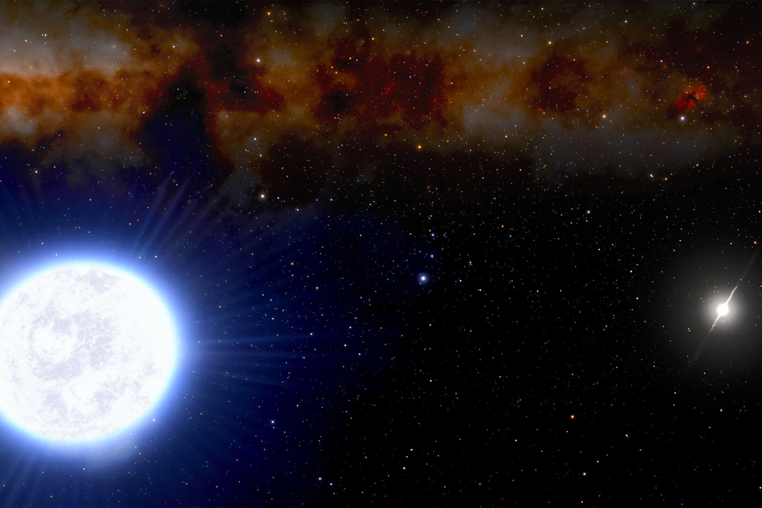 Когда звезда с массой, не превышающей массу Солнца, достигает конца своей звездной эволюции, у нее заканчивается водород, используемый для подпитки процессов ядерного синтеза в ядре. Звезда проходит через стадию красного гиганта, сбрасывает внешние слои и наконец сжимается до состояния белого карлика размером с Землю с первоначальной температурой порядка 100 000°C. «В настоящее время компаньон пульсара пока еще раздут примерно в пять раз по сравнению с состоянием обычного белого карлика такой же массы, — поясняет Суихарт. — Он будет продолжать остывать и сжиматься и примерно через два миллиарда лет станет выглядеть идентично прочим белым карликам с чрезвычайно малой массой, о которых мы уже знаем».