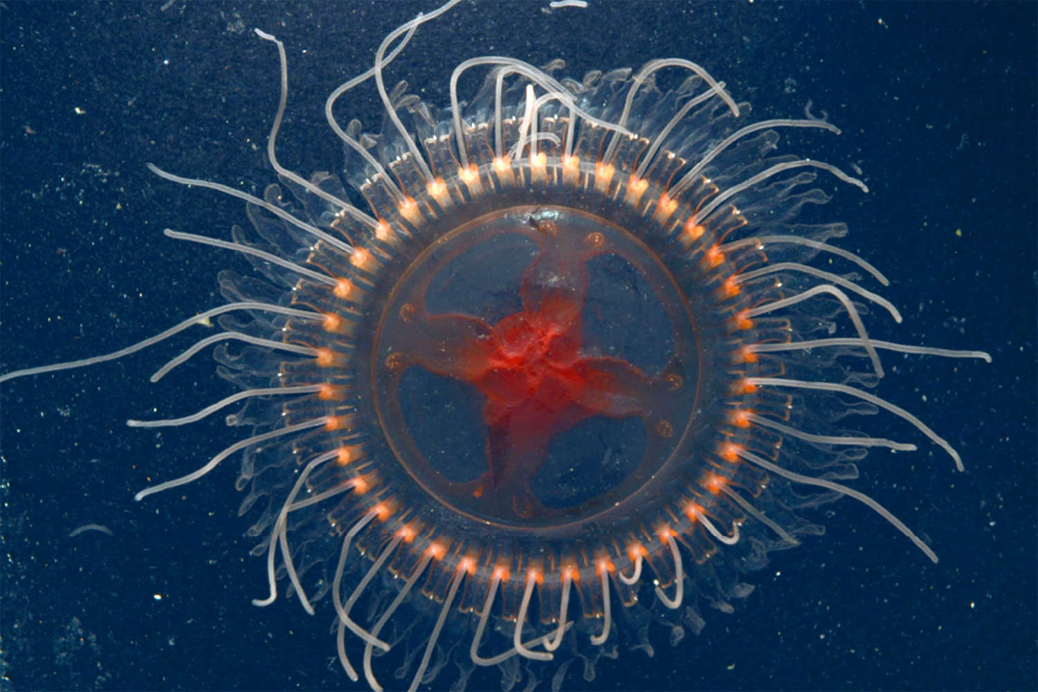 Необычно большую и весьма эффектно выглядящую глубоководную медузу из рода Atolla описали американские морские биологи из Исследовательского института Океанариума залива Монтерей в Калифорнии. Новый вид получил наименование Atolla reynoldsi в честь старейшего волонтера океанариума Джеффа Рейнольдса. Статья об этом опубликована в журнале Animals.