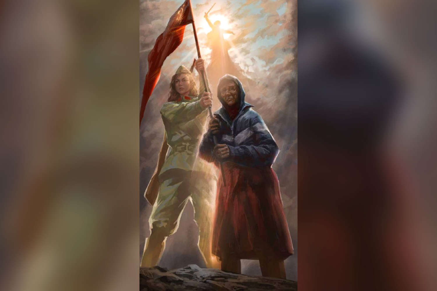 «Изображение пожилой женщины-героини с красным знаменем в руках появится на корпусе ракеты-носителя Роскосмоса на одном из ближайших ракетных пусков», — написал Рогозин.