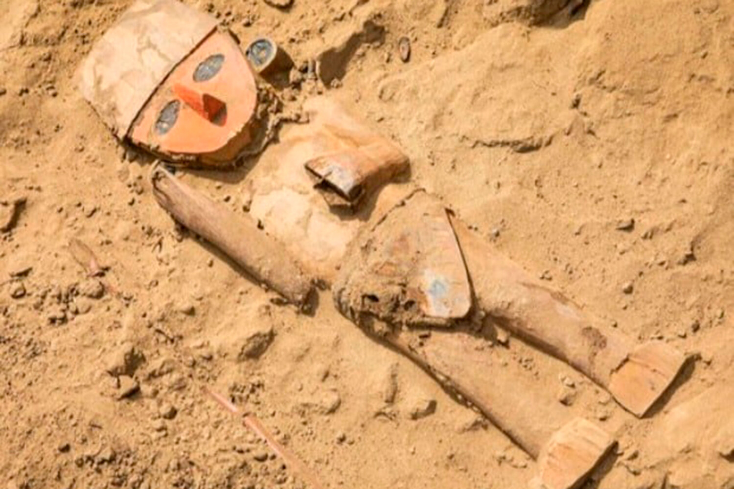Культура чиму существовала в IX-XV веках нашей эры на северном побережье Перу. Артуро Паредес Нуньес и его коллеги провели раскопки памятника Уака-Такайнамо, относящегося к этой культуре. Там они обнаружили деревянную фигурку, и исследователей удивила ее высокая сохранность. Артефакт представляет собой изделие длиной 47 сантиметров и шириной 16 сантиметров. У фигуры плоское лицо овальной формы, окрашенное в красный цвет, а также выступающий нос.